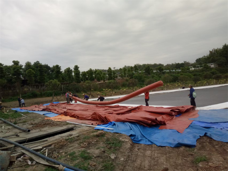 红膜沼气池通常采用高强工业聚酯纤维红泥专用沼气池材料,其成分比一般的 PVC 多了红泥成份,具有优异的耐光热老化、耐侯、拉伸强度、抗渗透等性能。沼气池主要包括发酵池和储气袋,储气袋有圆柱形和长方形等,发酵池有茶壶形及浮罩形等。