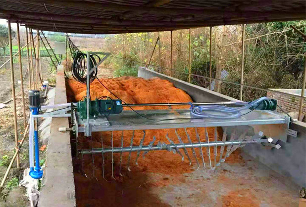 异位微生物发酵床养殖是指养猪与粪污发酵分开,猪不接触垫料,养殖大棚外建垫料发酵舍,垫料铺在发酵舍内,猪场粪污收集后利用潜泵或人工均匀喷在垫料上进行生物菌发酵的粪污处理方法。